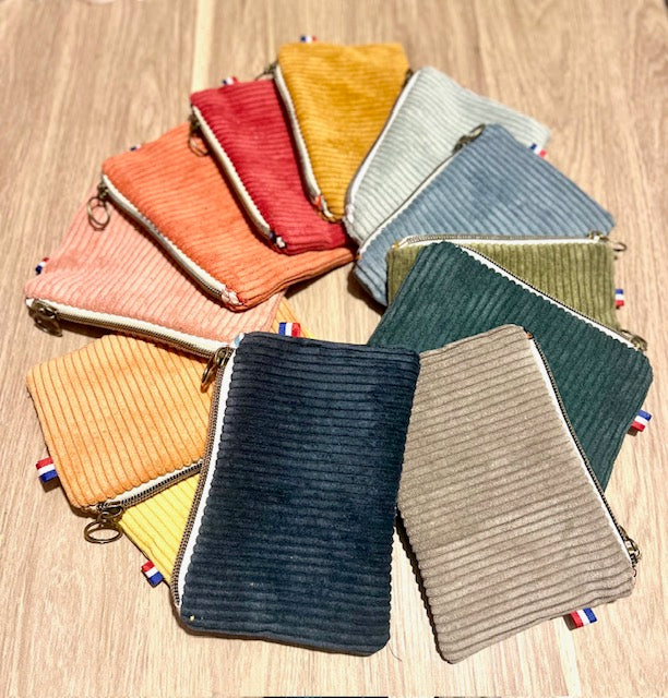 Ce porte-monnaie en velours côtelé allie charme rétro et élégance moderne. Entièrement fait main, il se distingue par sa texture douce et ses finitions soignées. Compact et pratique, il se glisse facilement dans un sac ou une poche tout en offrant l’espace nécessaire pour ranger votre monnaie, vos cartes ou vos petits essentiels du quotidien.